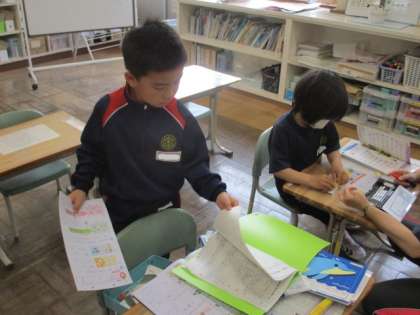 1年生の算数です。もうブロックを使わなくても計算ができるようになってきました。ブロックを片付けています。