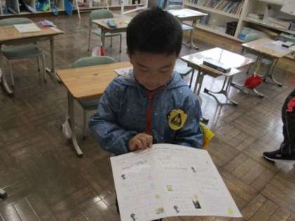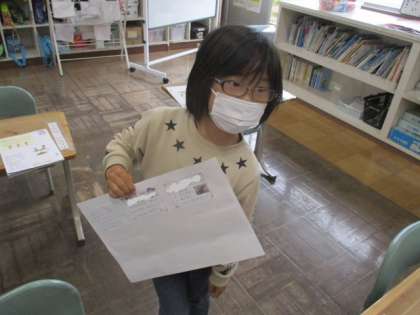 1・2年生の生活科の続きです。先生方と交換した名刺を台紙に貼りました。