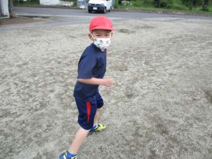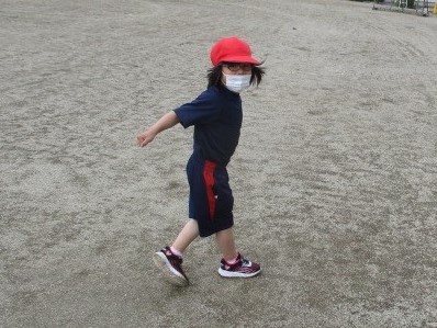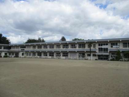 校舎と空、業間の子ども達の様子です。風があり、少し肌寒い感じがしましたが、子ども達は元気におにごっこを行いました。