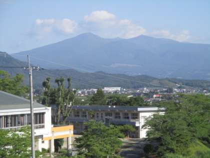今朝の校舎と安達太良連峰、館山の風景です。とても天気がよく、日射しがまぶしく感じられました。