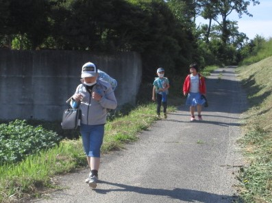 今朝の登校の様子です。風がありましたが、気温が上昇しそうです。子ども達も歩いていて暑かったようでした。熱中症予防のために、水分補給をこまめに行うよう注意させたいと思います。