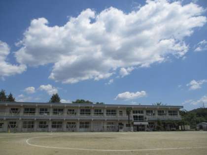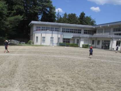 とても楽しそうに過ごしいます。おにごっこが始まりました。校舎の上に積雲が浮かんでいました。
