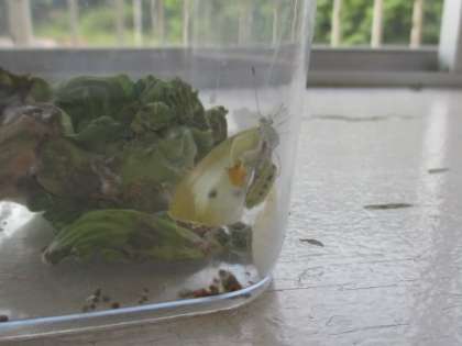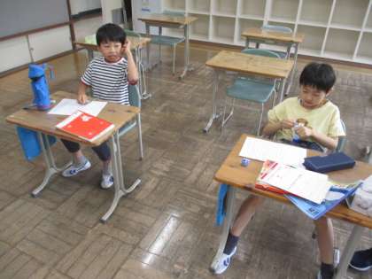 3年生の国語です。作文を書いています。また、教室のアオムシが羽化したことを教えてくれました。モンシロチョウの観察をとても楽しみにしています。