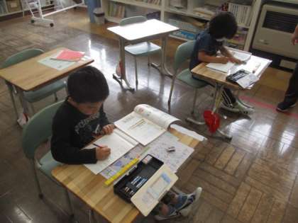 1年生の算数です。ノートを使って学習しました。ノートにめあてを記入し、問題を書いて答えを出しました。子ども達の成長をとても嬉しく思います。