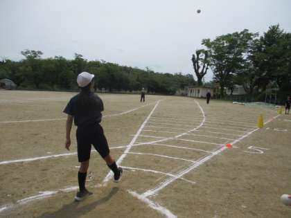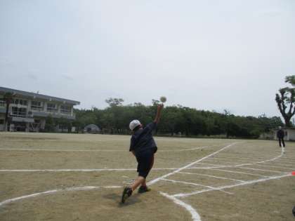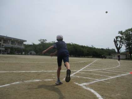 ボール投げの様子です。高学年になると、ボールの投げ方が上手になるようです。