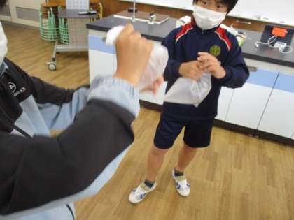 はいた空気に石灰水を加えると、ばっちり白く濁りました。