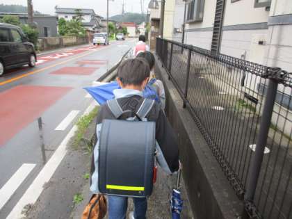 朝の登校の続きです。止まってくれた運転手に「ありがとうございました」ときちんとあいさつをしています。礼儀正しい「たかくらっ子」です。