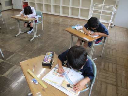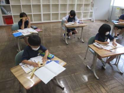 5・6年生では陸上交歓会を本日実施する予定でしたが、雨天のため19日(月)に延期となったため、校舎や体育館で通常の授業が行われています。授業の様子をお届けします。