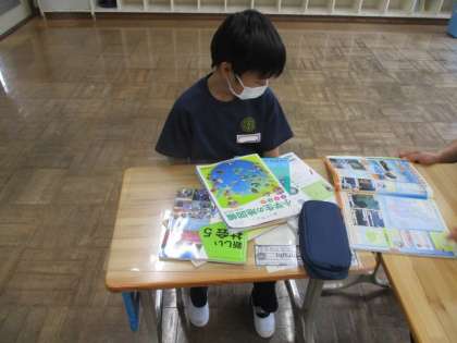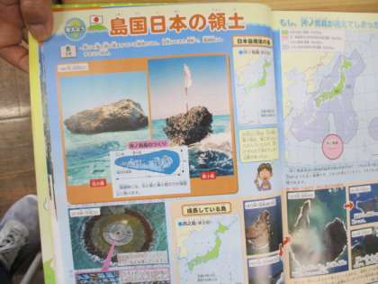 5年生の社会科です。日本の領土について、沖ノ鳥島では護岸の設置等の保全工事がされていることを学習しました。