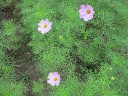 学校の花壇のコスモスが少し咲いています。コスモスは9月頃に咲くものと思っていましたが・・・不思議です。