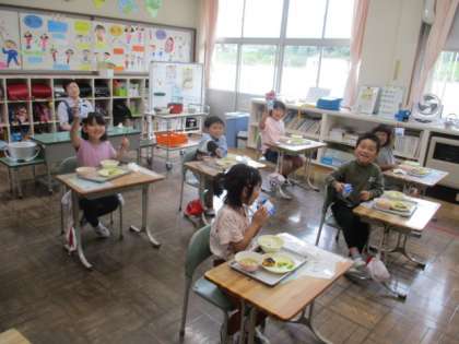 1・2年教室では、今日が誕生日の児童のために、ハッピーバースデートゥーユーを全員で歌った後、牛乳で乾杯しました。