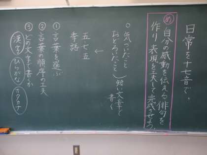 5年生の国語です。陸上交歓会のことを思い浮かべながら、俳句に挑戦しています。どのような作品ができるでしょうか?
