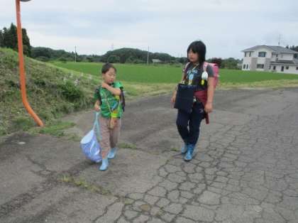 子ども達の登校の様子です。地域の方に元気にあいさつしています。