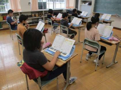 3・4年生の音楽の授業です。鍵盤ハーモニカの演奏が上手になってきました。
