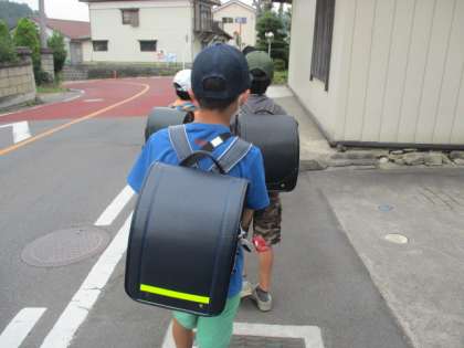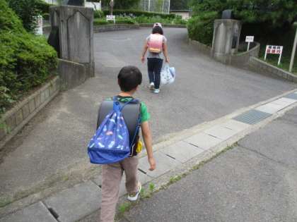 朝の登校の様子です。プールの準備物を毎日忘れず持ってきています。