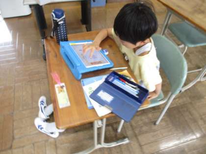 業間の様子を一部お届けします。紹介する本や端末、書写の続きなどに取り組んでいて、それぞれです。