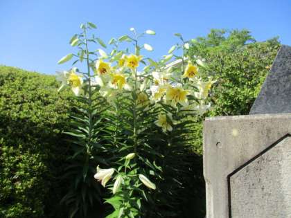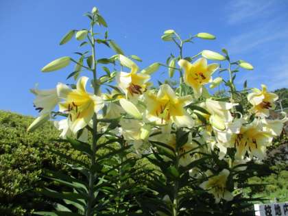 校門のユリが花を咲かせました。