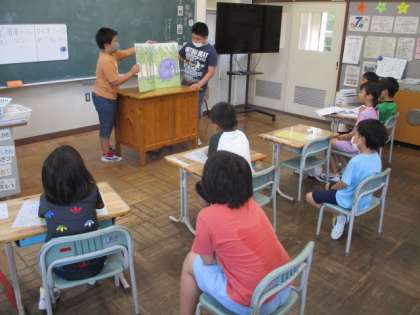 こころ元気委員会の皆さんが、1・2年生に朝の読み聞かせを行いました。読み方を工夫したので、1・2年生は興味深そうに聞いていました。
