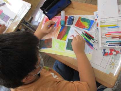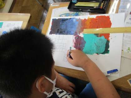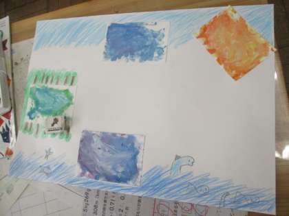 3・4年生の図画工作の続きです。よく見ると、作品の中にチンアナゴが描かれています。
