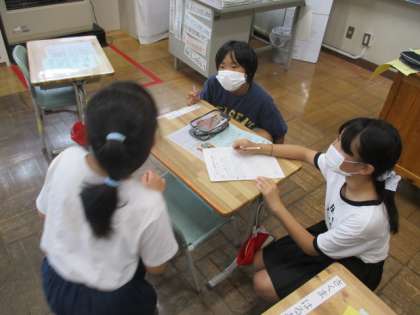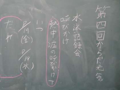 からだ元気委員会です。明日の実施予定の校内水泳記録会の分担や、熱中症の呼びかけについて話し合っています。