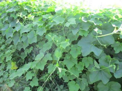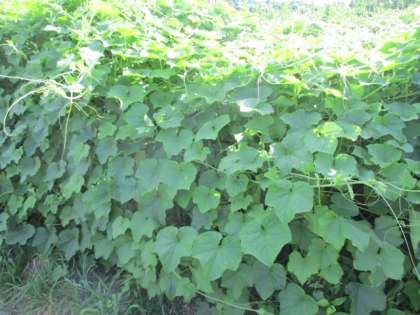 通学路にアレチウリが繁殖していました。