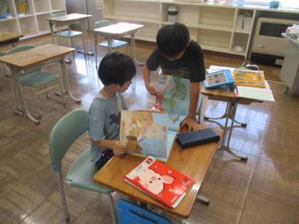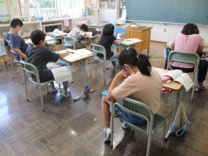 授業の様子を一部お届けします。4年生、3年生の国語の授業の様子です。3年生では本を読んで新しく知ったことを発表するために、まとめを行っています。