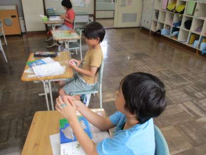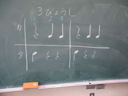 1・2年生の音楽では、タンバリンやカスタネット等の楽器を使って、リズムをとる学習をしました。
