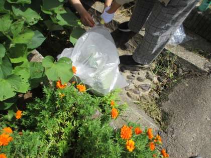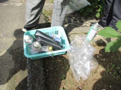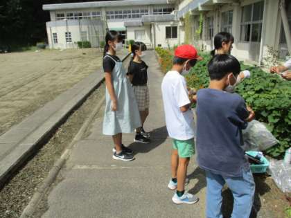 6年生は、業間を利用して理科の実験を行いました。植物に袋をかぶせた後、気体検知管を使って酸素や二酸化炭素の濃度の変化について調べました。