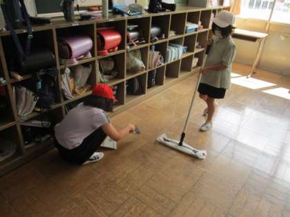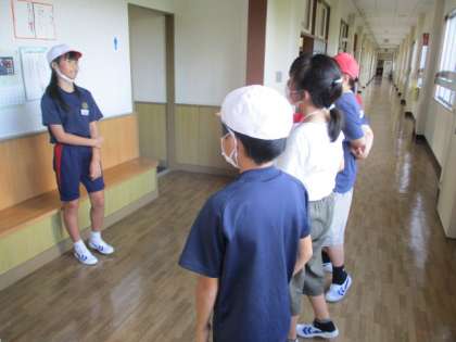 縦割り清掃の続きです。今日も6年生が中心になって清掃を行っています。