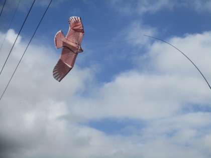 鳥追いのカイト鷹が不規則に舞っています。見事な動きです。お彼岸を過ぎると稲穂が金色に変わってくるようです。