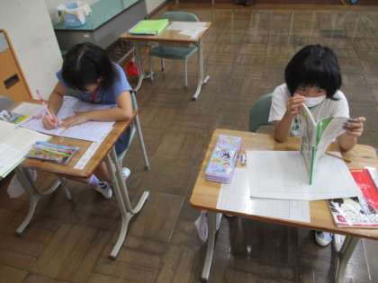 今日の授業の様子を一部お届けします。1・2年生の国語の授業です。今日も「わたり」「ずらし」による授業が行われています。
