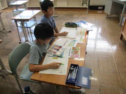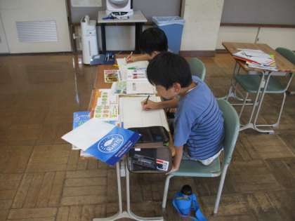 3年生の社会科です。見学学習で訪問した郡山卸売市場や、訪問先の宝来屋で学習した「みその作り方」等について新聞にまとめています。