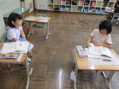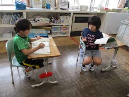 1・2年生の国語の授業の続きです。2先生はペアになって学習を進めています。