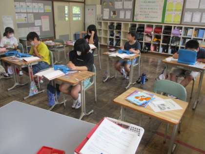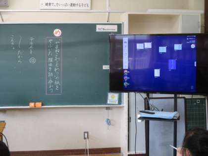 4年生の国語の授業です。端末を使って意見交換を行いました。