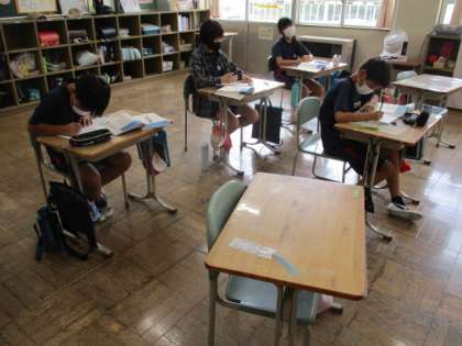 6年生の国語です。「やまなし」の朗読を聞きながら、5月と12月のイメージを膨らませました。