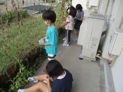 1・2年生では昨日に引き続き朝の時間に、アサガオの種を取り出しました。各自で持ち帰り、来年お家に植えることにしました。また、一部は来年度の1年生にあげる予定です。