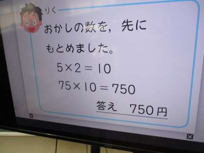3年生の算数です。かけ算はかける順番を変えてもよいことを学習しました。