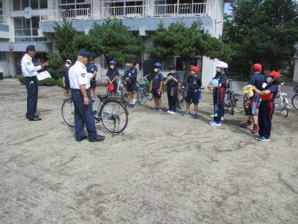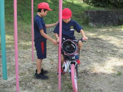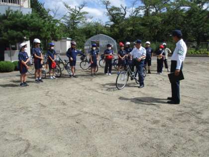 3〜6年生は、自転車の点検方法を教えていただき、持参した自分の自転車を実際に確認しました。