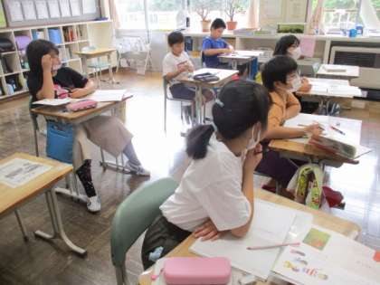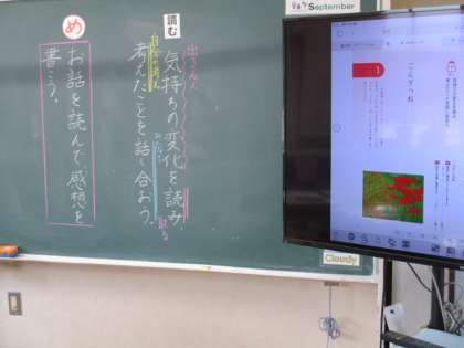 4年生の国語の授業です。単元「ごんぎつね」の学習に入りました。今日は教科書を読んで、感想を書きました。