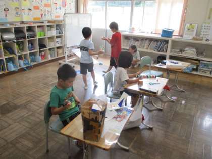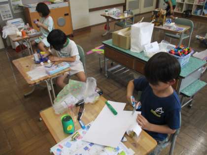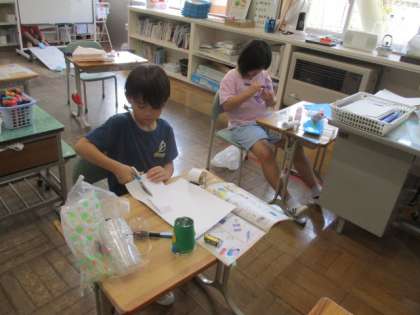 1・2年生の図画工作の続きです。とても楽しそうに動くおもちゃづくりに取り組んでいました。