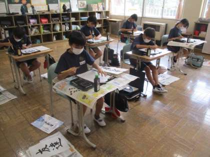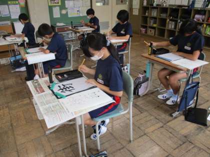 5・6年生の書写です。字の大きさやバランスに注意し、集中して取り組みました。