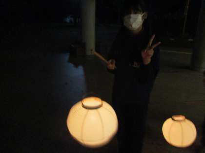 歩き始めはロウソクの火が点いていましたが、しばらく歩いているうちに風で消えてしまいました。懐中電灯の明かりを頼りに歩いて行きます。