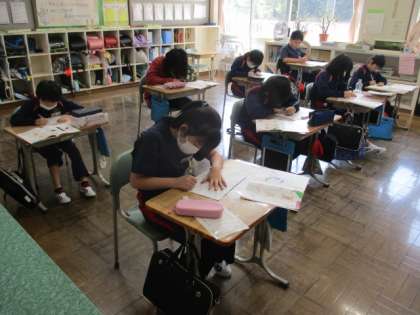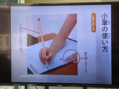 今日の授業の様子を一部お届けします。3・4年生の書写の授業です。