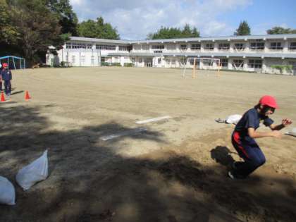 5・6年生の体育の授業です。走り幅跳びを行いました。