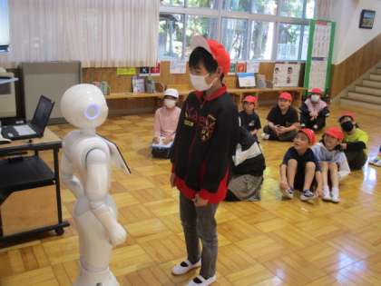 大雨による土砂災害を想定した避難訓練を実施した後、pepperくんによる防災講座を行いました。