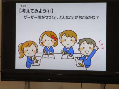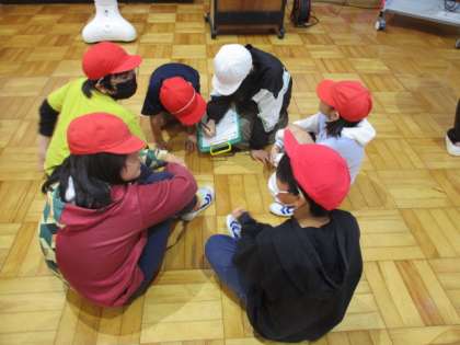 防災講座の続きです。縦割り班になって、話し合い活動を行いました。