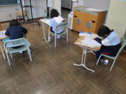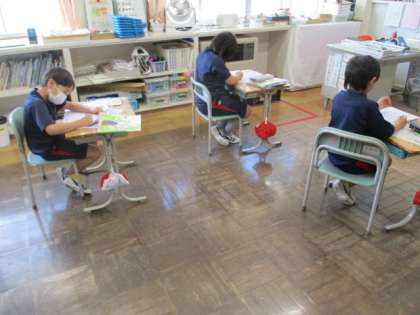 1・2年生の国語の授業です。2年生は漢字の学習に取り組んでいます。