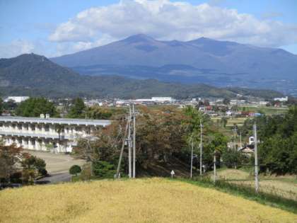 校舎と安達太良連峰