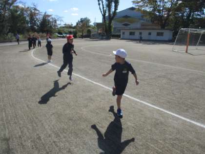 今日もマラソンタイムを行いました。先生方も一緒に走っています。