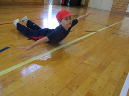 1・2年生の体育の授業です。始めに様々な運動を行いました。